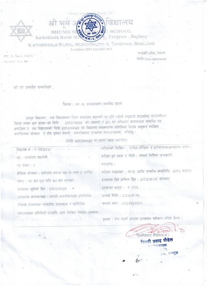 कार्यालय सहयोगी आवश्यक्ता सम्बन्धी सूचना ।